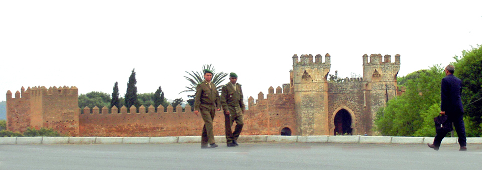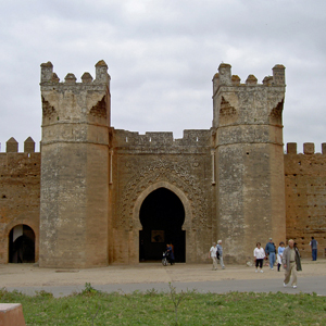 Beyond the massive Merenid gate is a valley of flower gardens and fruit trees overlooking the river.