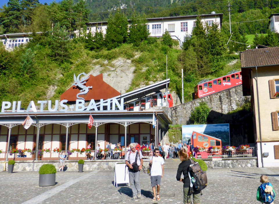 The boat stops right at the Pilatus Bahn station.