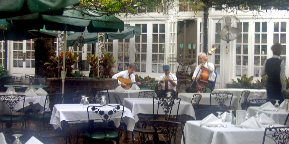 Arnaud’s offers its traditional menu or the Jazzy Table d’Hôte, four delectable courses with such entrees as Filet Lafitte and Shrimp Creole, set in the atmosphere of a live jazz ensemble. We ordered Oysters Arnaud, Roast Louisiana Quail Elzey, “filled with Foie Gras Mousse on a bed of Truffle-infused Bordelaise Sauce” and Veal Wohl, a sampler of Veal Chantal, Creole Crab Cake and Crawfish O’Connor. Superb!