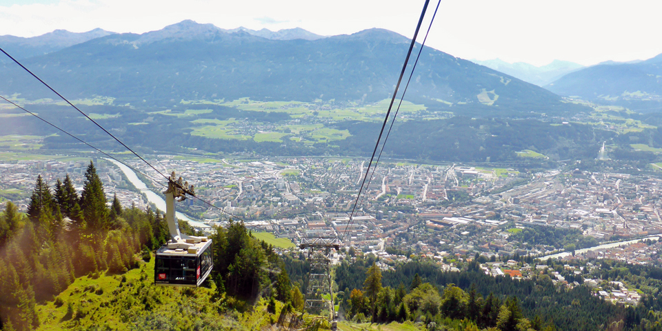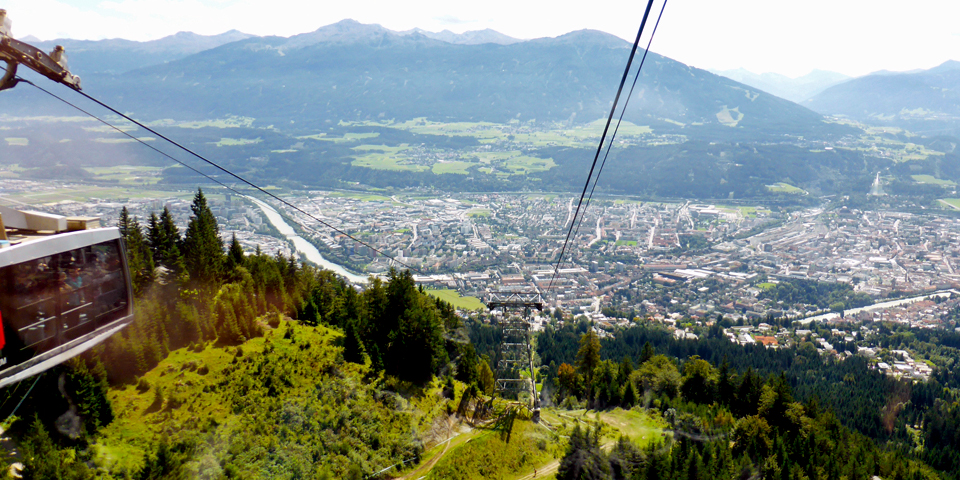 From Innsbruck’s city center it takes just twenty minutes on the new Nordkettenbahnen to ascend 1000’ by funicular to Hungerburg.