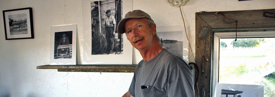 Summers, after a busy day as a lobster fisherman, Joe uses his shed as a gallery, The Corea Wharf Gallery features the photography of his aunt, Louise Z. Young, who left Corea to work in portrait studios and returned to photograph the area in the 1940s, 50s and 60s. Young also displays historic street scenes of Paris made from glass plates created by renowned photographer Eugène Atget’s, acquired as a result of his aunt’s association with architectural photographer Berenice Abbot, who purchased the plates from Atget’s estate.