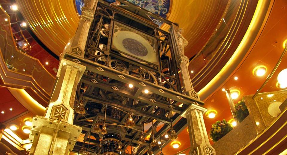 The Planeto Astrolabium is suspended in the Amsterdam’s three-story atrium, tracking constellations, the planets, world time and ship time.