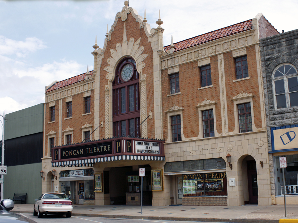 The Poncan Theater was built in 1927 as a vaudeville house and silent film theater known as a mood-elevating “atmospheric theater.” This grand show palace featured air conditioning, a twelve person orchestra, Wurlitzer pipe organ, and uniformed usherettes. John Philip Souza Band and Sally Rand, who appeared with just her fans and a transparent balloon were among the performers.