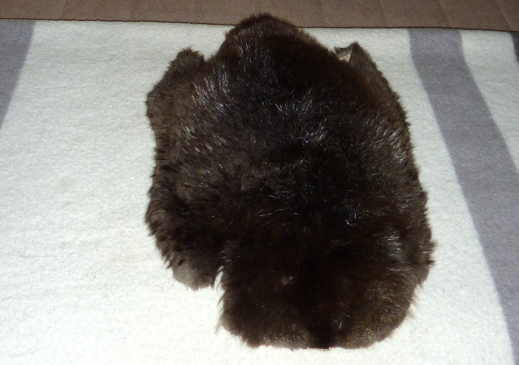 back side of Canadian nickel beaver pelt on blanket at Wendake, Huron-Wendat Nation reserve