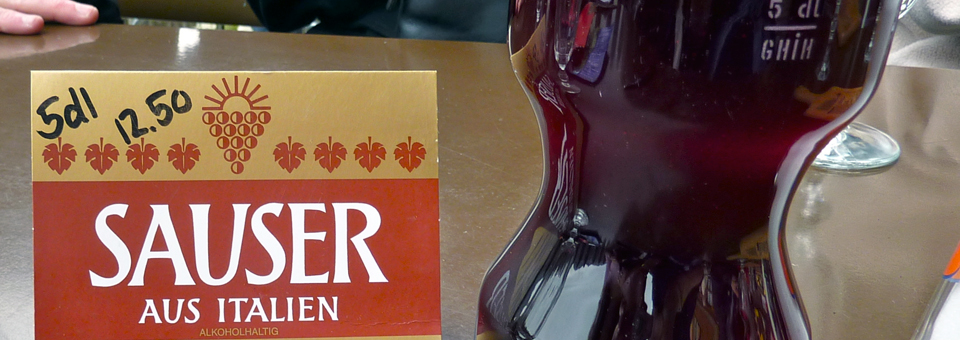 Prost! We toasted with Sauser, an unfermented juice available after the grape harvest. A full menu was available, and on Friday in this Catholic area, the daily specials are meatless.