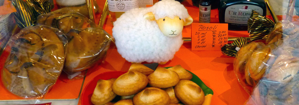 The bakery has now been in the same family for seven generations. The shop has a wide range of products for pilgrims and others, including a filled gingerbread that is an Einsiedeln specialty, and liqueurs.