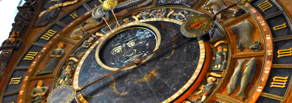 The clock has rotating figures of Jesus and the apostles and calculates celestial motion, seasonal activities, sunrise and sunset, holy days–even the day of the week you were born. And it’s the only clock in the world from this period to continue to keep perfect time. It is still driven by a stone on a rope that is wound every few days.