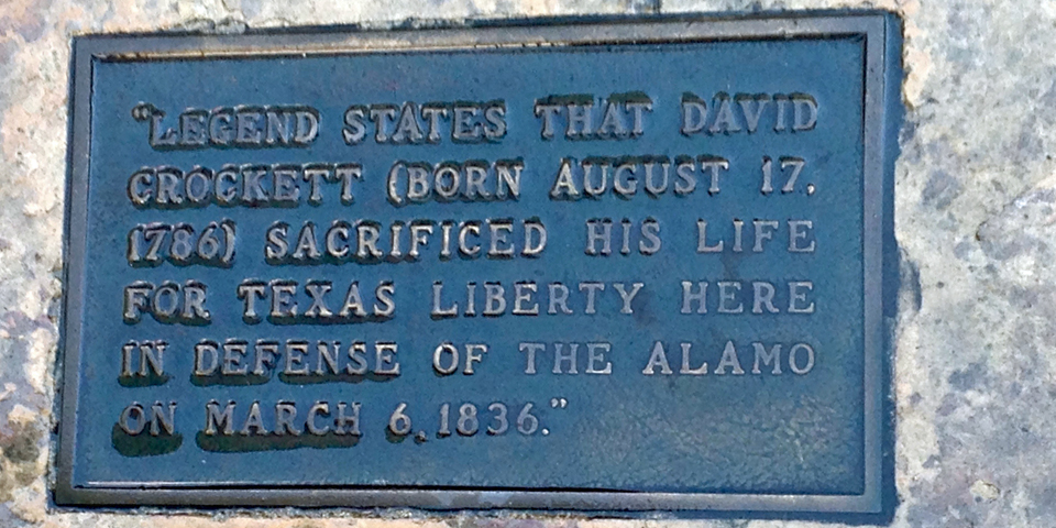 Davy Crockett plaque at the Alamo, San Antonio