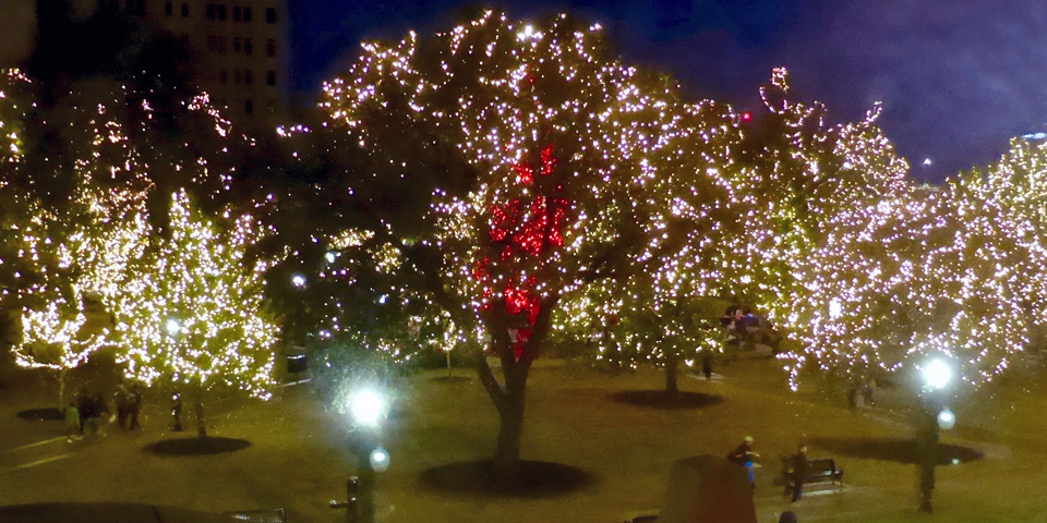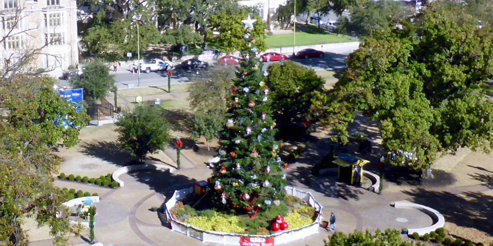 The city’s 55’ Christmas tree was moved three blocks away from Alamo Plaza to Travis Park in 2017. Travis Park is named for the Alamo’s commander and was once part of the Alamo’s farmland.