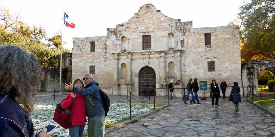 As you might expect, people were taking selfies in front of the Alamo when we visited San Antonio in December. But something was a little different from usual.