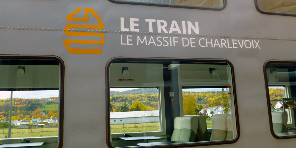 During the summer season Le Train of Le Massif de Charlevoix travels between Montmorency Falls in Quebec City and Hôtel La Ferme.