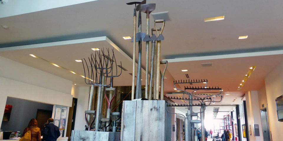 Cirque du Soleil co-founder Daniel Gauthier opened Hôtel La Ferme in Baie-Saint-Paul in 2012. He planned to renovate the largest freestanding wood barn in Canada as lodging for his other venture, the ski area at Le Massif de Charlevoix, a ski mountain with the highest vertical drop east of the Canadian Rockies.