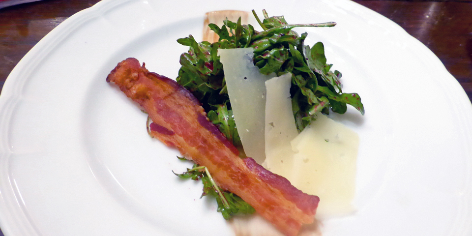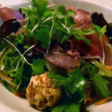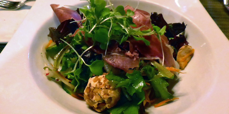 salad of regional greens, cheese, and bacon,Table du Chef, Fairmont Le Manoir Richelieu, La Malbaie, Quebec, Canada