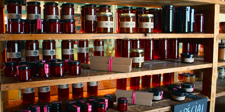 The boutique features an array of black currant delicacies, including mustards, wine jelly, onion jam and syrups, and vinaigrette.