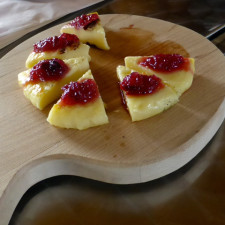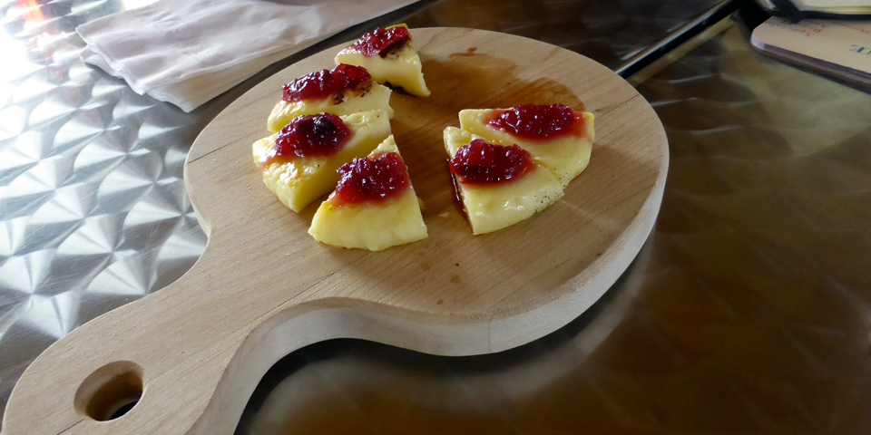 We were off to sample the first kind of cheese made in North America, at Les Fromages de l’isle d’Orléans. The cheese is eaten hot, right from the frying pan where it is cooked for 2-3 minutes on each side.