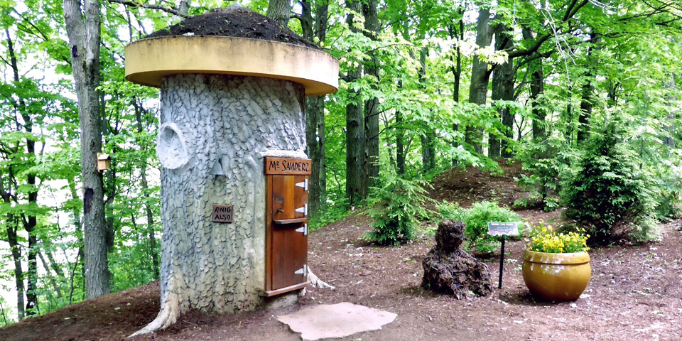 There are six themed gateways to gardens, sculptures, structures, musical instruments, and whimsical displays based on books.