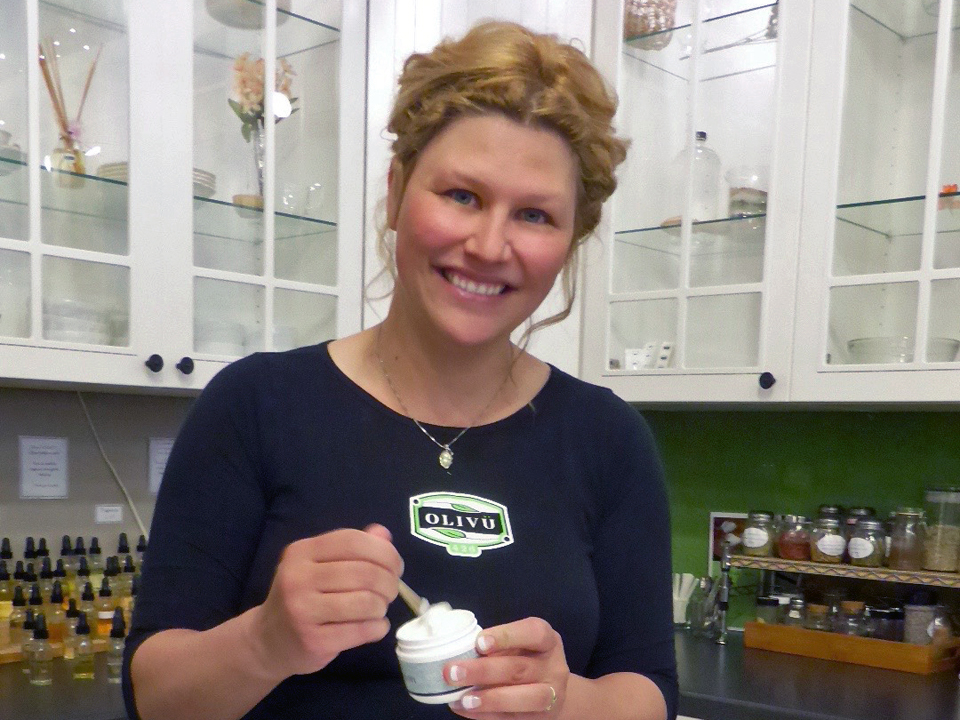 Adam recovered but died in a car accident. Caitlyn earned an entrepreneurship certificate to add to her business degree and opened a shop on Main Street to sell her freshly-prepared preservative-free personal care products made from natural ingredients. Customers at Olivü 426, a name derived from a major ingredient, olive oil, the sound of “I love you”, and Adam’s snowmobile number, were busy customizing their purchases by mixing in their choice of colors and fragrances.