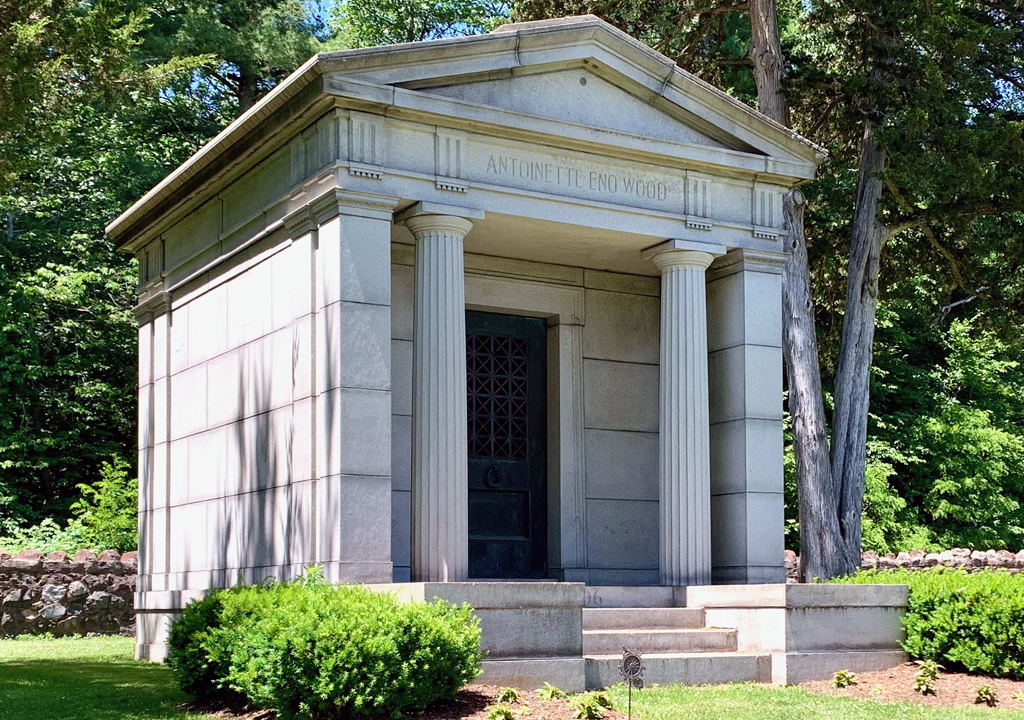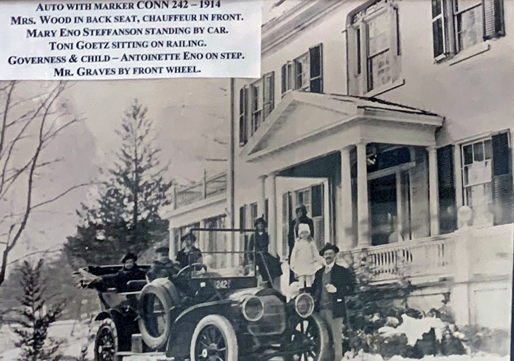 She is fondly remembered in Simsbury for hosting an annual Fourth of July Ice Cream Social for the entire town. There was band music, dancing and, a real treat back then, unlimited ice cream. She died in 1933, leaving money for the Eno Memorial Hall in remembrance of her parents and large bequests to the Congregational church as well as to family members, charities and other organizations. Her mausoleum is at the top of the hill in the Simsbury cemetery.