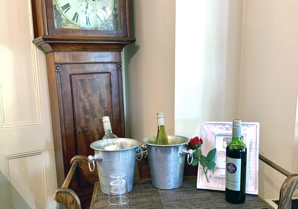We arrived just in time for the complimentary wine available from 4-7pm in the foyer. We sipped it leisurely in a quiet spot by one of the hanging baskets of flowers on the porch, enjoying the gentle breeze. Coffee, tea, hot chocolate, water and newspapers are always available and also complementary.