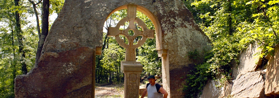 The pièce de résistance is the Celtic Cross created by sculptor Greg Harris from a rock in the woods where Gary used to play as a child. Made of 300 million year old native Pennsylvanian age rock, part of the area’s sandstone cap, it is believed to be the largest in situ–of its own stone– Celtic Cross in the world. Quartzite gives it a sparkly glow.