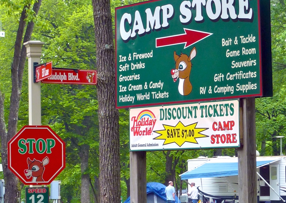 Lake Rudolph Campground & RV Resort, adjacent to Holiday World, was named 2008-2009 RV Park of the Year. There are over 240 family rental 38’ and 44’ RVs, a variety of full hookup RV sites, cabins, and camp sites with water and electricity. The new Rudolph’s Christmas Cabins, with king bedroom, extra large loft, flatscreen TVs, electric fireplace, and free high-speed Internet, are all decked out for the holiday and sleep four adults and four children. Rates begin at $25 for tent sites, $30 for RV sites, $70 for RV rentals, and $140 for Christmas cabins.