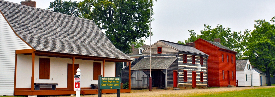 Across the road, a log cabin houses the Visitor Center for the buildings known as the Vincennes State Historic Site. The military outpost Fort Knox 2 site is outlined with short posts. It became a hospital for soldiers injured in the Battle of Tippecanoe.
