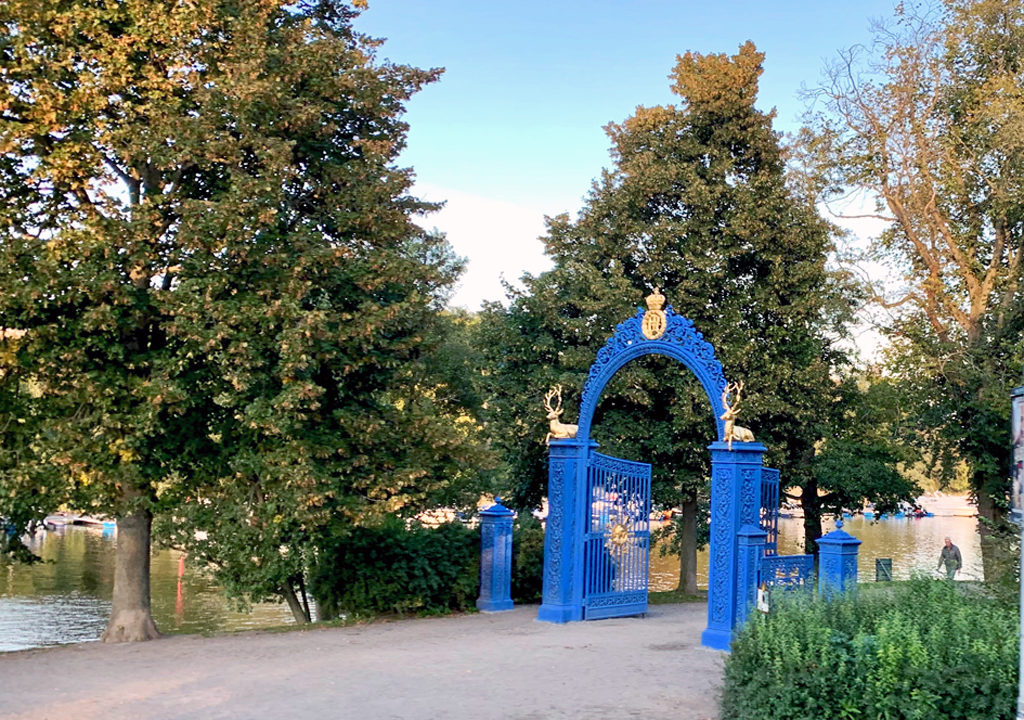 Blue gates mark the entrance to Royal Djurgården Park, a green oasis and 18th and 19th century game park of kings. It’s the perfect place for a stroll, a picnic, or to simply relax and enjoy the view.