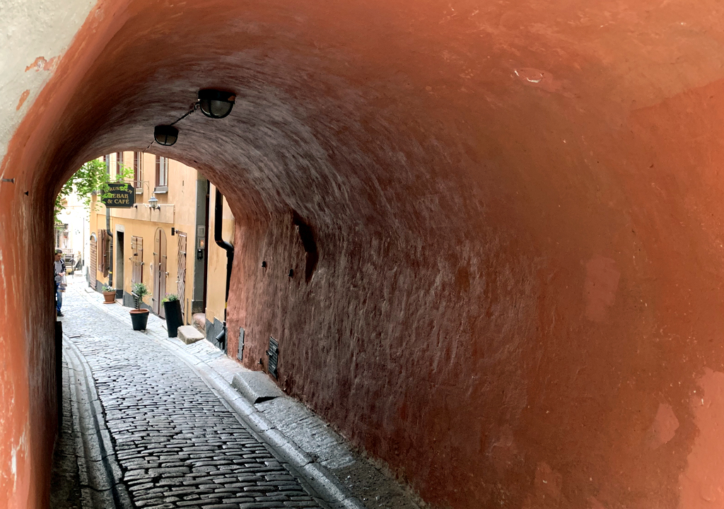 A little tunnel might lead to a tiny café. There are passageways and alleyways, like Mårten Trotzigs Gränd, which narrows to under a yard wide.