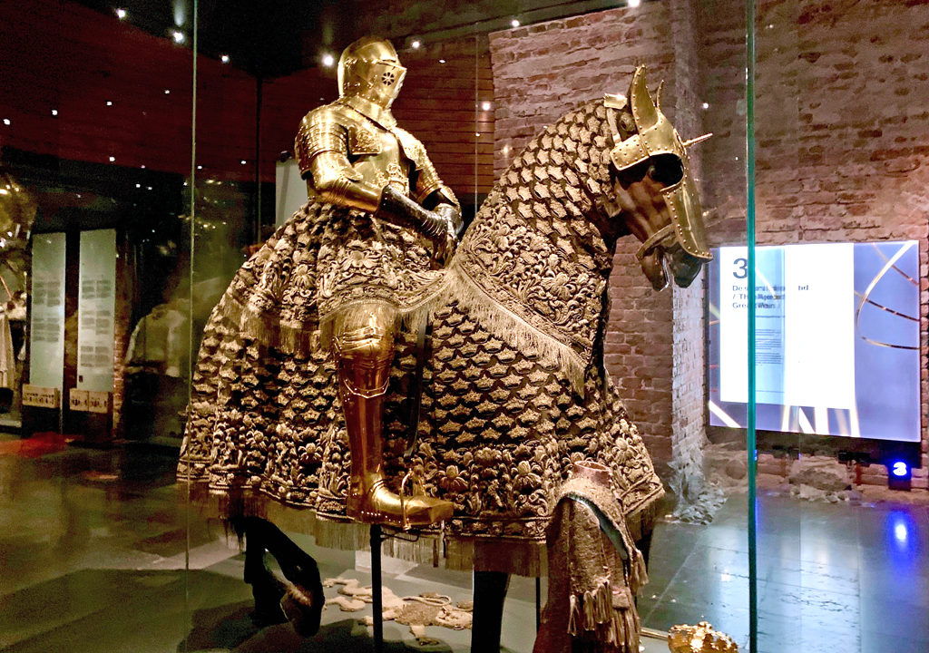 The Armory, with its gilded coronation carriages and coaches from the Royal Stable, splendid royal costumes and, of course, royal armor, is in the old vaults of the Royal Palace. It is the the oldest museum in Sweden.