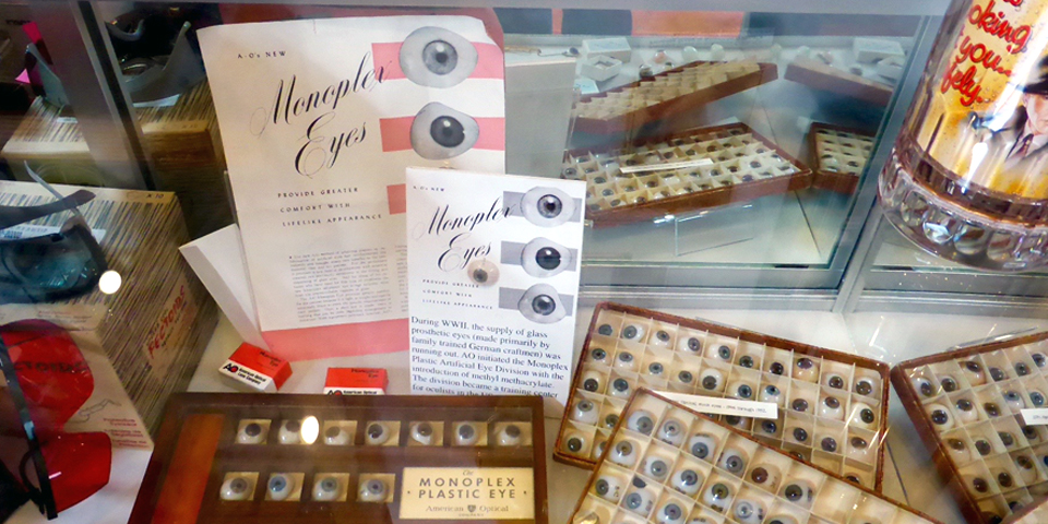 The museum is staffed by people who worked at or have links to AO and have stories to tell. Dick Whitney worked at American Optical when its last division closed in the late 90s and now works in a Main Street office for ZEISS, which markets AO lenses.