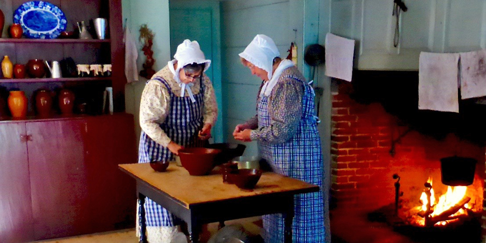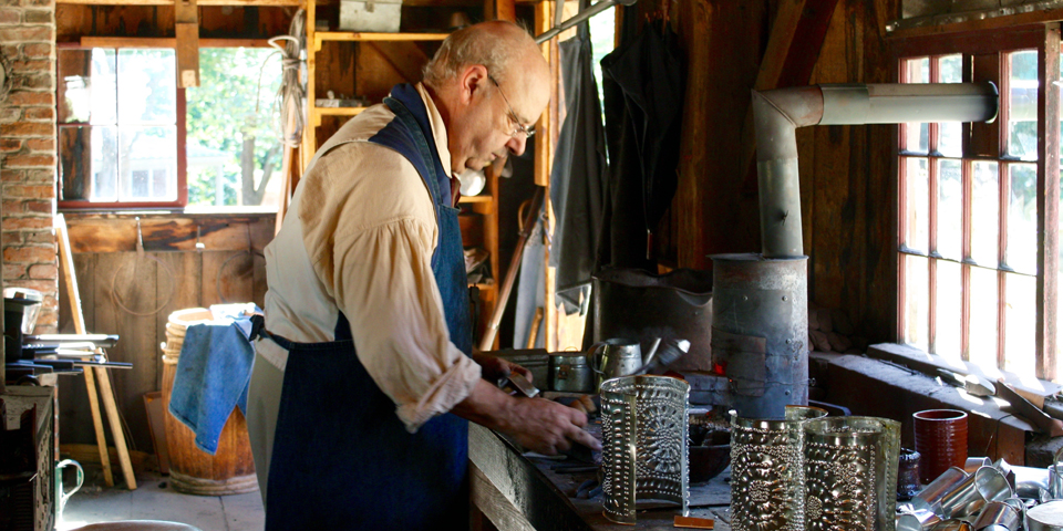 You can watch skilled craftsmen make buckets and barrels, pottery, tinware, and iron tools. Though the terms were not used then, this was an age when sustainable living and farm-to-table dining were necessary components of everyday life.