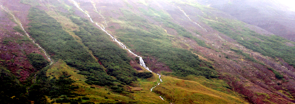 Outside the city is a rugged landscape with panoramic vistas at every turn. The islands were formed millions of years ago by an undersea volcanic eruption, creating steep basalt slopes and deep chasms. Water gushes down verdant hillsides and cliffs, creating waterfalls made more dramatic by the frequent rain.