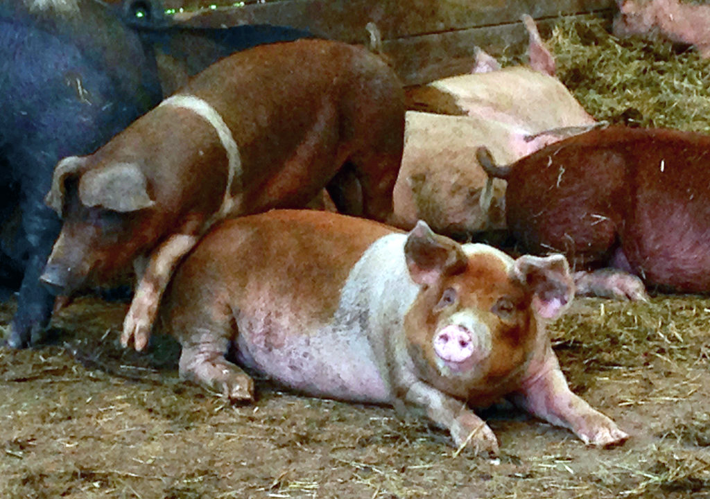 Owners Portia McKnight & Flo Hawley say “Cows are mothers. Treat them with respect.” Heritage-breed whey-fed pigs are part of the cycle of sustainable farming practices. Attend the the annual Piedmont Farm Tour and you might meet Fryer the ox.