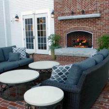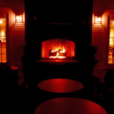 courtyard and fireplace by night, Groton Inn, Groton, Massachusetts