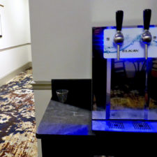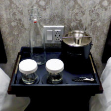 Robes are plush and stoppered bottles in the guest room may be filled with sparkling or still filtered water that is available on the first and third floors.