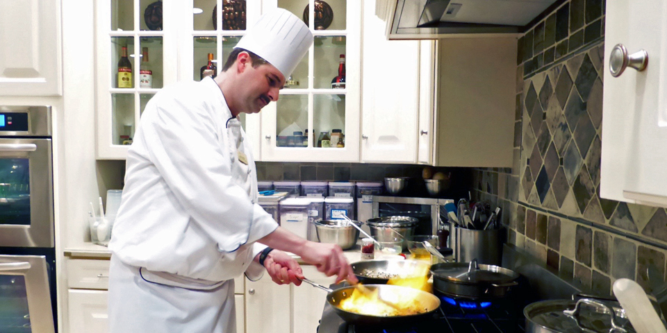 We each chose a recipe to work on with the assistance of the chef and his staff then dined on Classic French Onion Soup au Gratin, Lyonnaise Salad with Poached Egg and Red Wine-Dijon Vinaigrette, Coquilles St. Jacques au Gratin, Tenderloin of Beef au Poivre, Haricots Verts with Walnut Butter, Vichy Carrots, and Gratin Dauphinoise, Crêpes Suzettes with Raspberries, and a French baguette (classes $125-295).