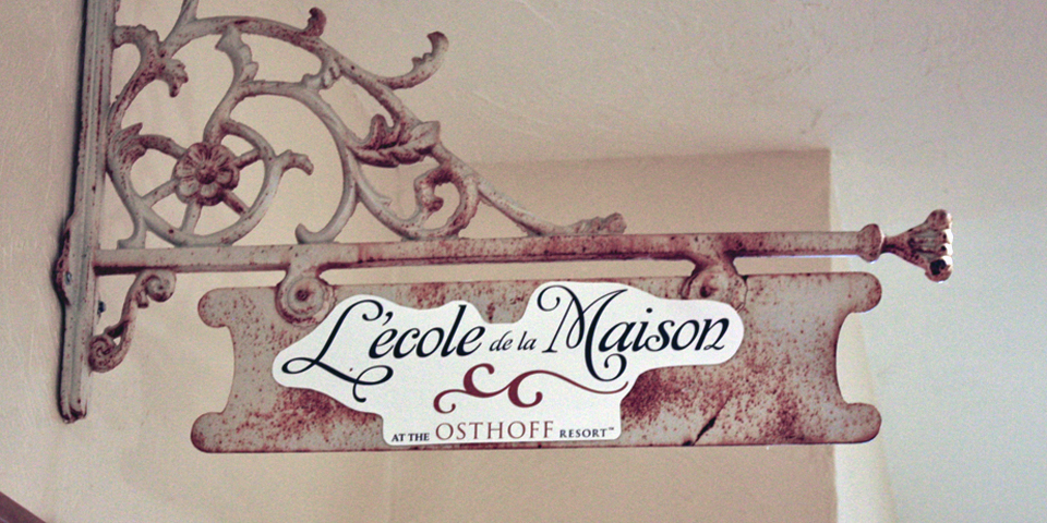 Chef Scott Baker uses natural ingredients and produce from the onsite garden in the restaurants and when he teaches classic French bistro cooking techniques at the hotel’s L’ecole de la Maison cooking school.