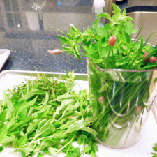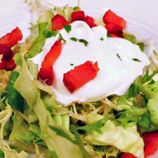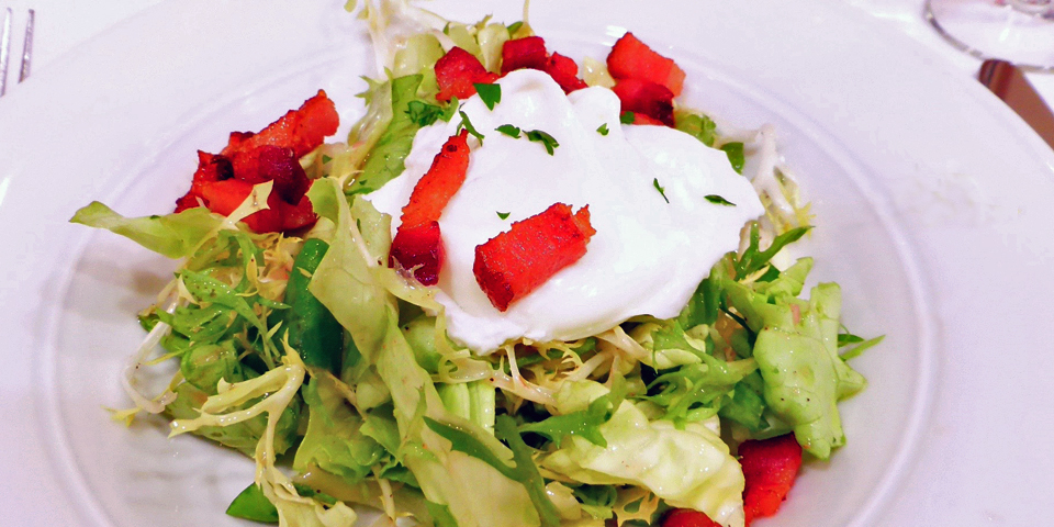 Lyonnaise Salad with Poached Egg and Red Wine-Dijon Vinaigrette, Osthoff L’Ecole da la Maison Cooking School, Elkhart Lake, Wisconsin