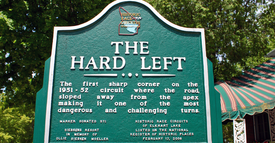 Fourteen historical markers throughout the village, like the one at the hard left turn, are a throwback to those years when the races were held on Elkhart Lake’s public roads.
