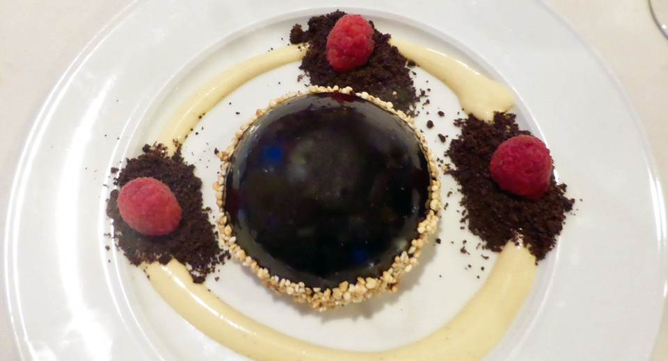 The signature dessert, Chocolate Hazelnut Croquetine, Lola’s on the Lake, The Osthoff Resort, Elkhart Lake, Wisconsin.