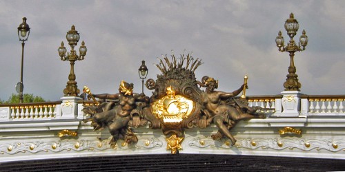 The Art Nouveau Grand Pont Alexandre III was built for the 1900 Universal Exposition, replete with cherubs, nymphs, and elegant lampposts. The innovative single span design created an unobscured view of the Champs-Élysées and the Invalides.