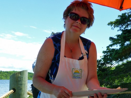 Kim at Eel Lake Oyster Farm, Ste. Anne du Ruisseau, Nova Scotia