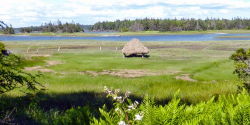 salt hay stacks at Le Village historique acadien de la Nouvelle Ecosse, Nova Scotia