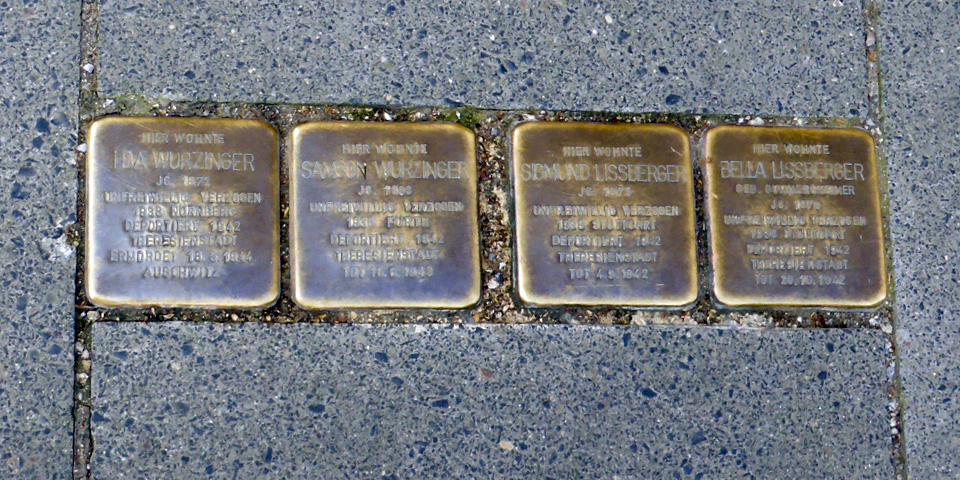 plaques marking homes of Holocaust victims