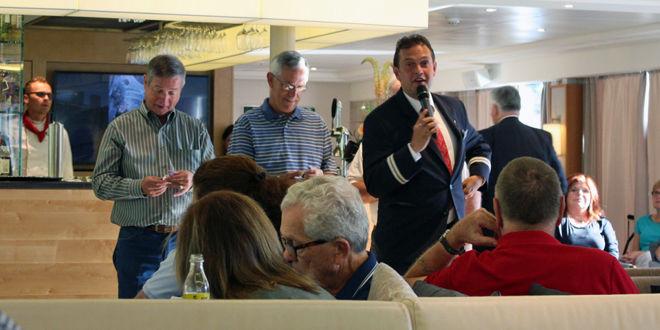 A brief pre-dinner presentation is held daily  in the lounge to discuss the next day’s destination and activities. Newsletters are placed in the stateroom during dinner with the next day’s schedule, background information, and places of interest. Information is also available on the stateroom televisions.