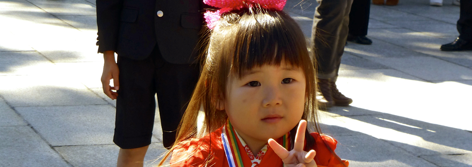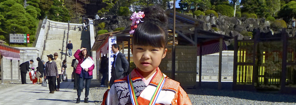 We had the good fortune to be there in November for the Shichi-go-san (Seven-Five-Three) Festival when children those ages are dressed in traditional kimonos and brought to the temple for a blessing of health and good growth. The custom dates to times of high child mortality rates.