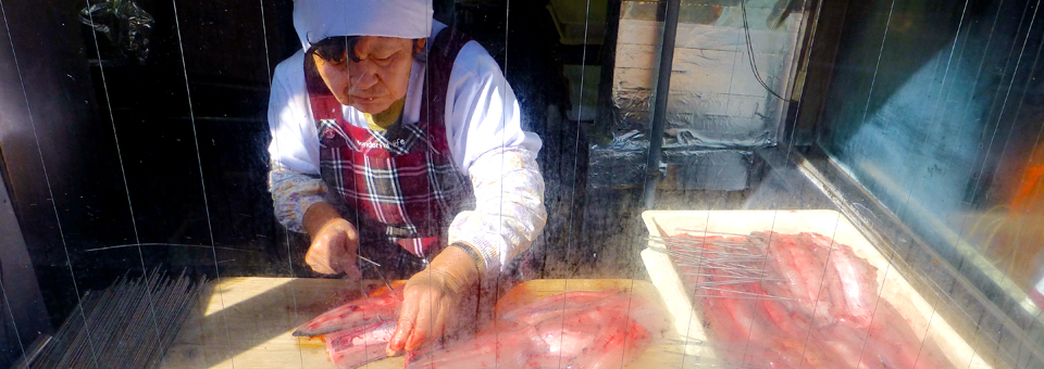 There are local products–peanuts, sweet potatoes, pickled vegetables, bamboo housewares, and little fish simmered in sugar and soy sauce.