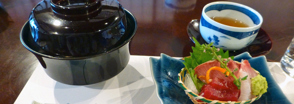 We removed our shoes, sat by the low table, and were given an oshibori, a small hot wet towel for cleansing hands. The multi-course feast was served in a variety of baskets, covered dishes, and lacquerware boxes.
