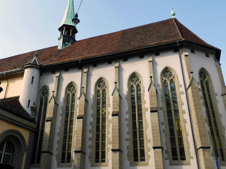 Construction began in the 1420s on the cathedral, which continues to be Switzerland’s largest ecclesiastical building. It has the nation’s largest bell, at ten tons, and tallest church tower, completed in 1893 and 100 meters high. Those who climb the tower see the carvings, gargoyles, and, on a clear day, a spectacular view of the city, Bernese Alps and Jura.