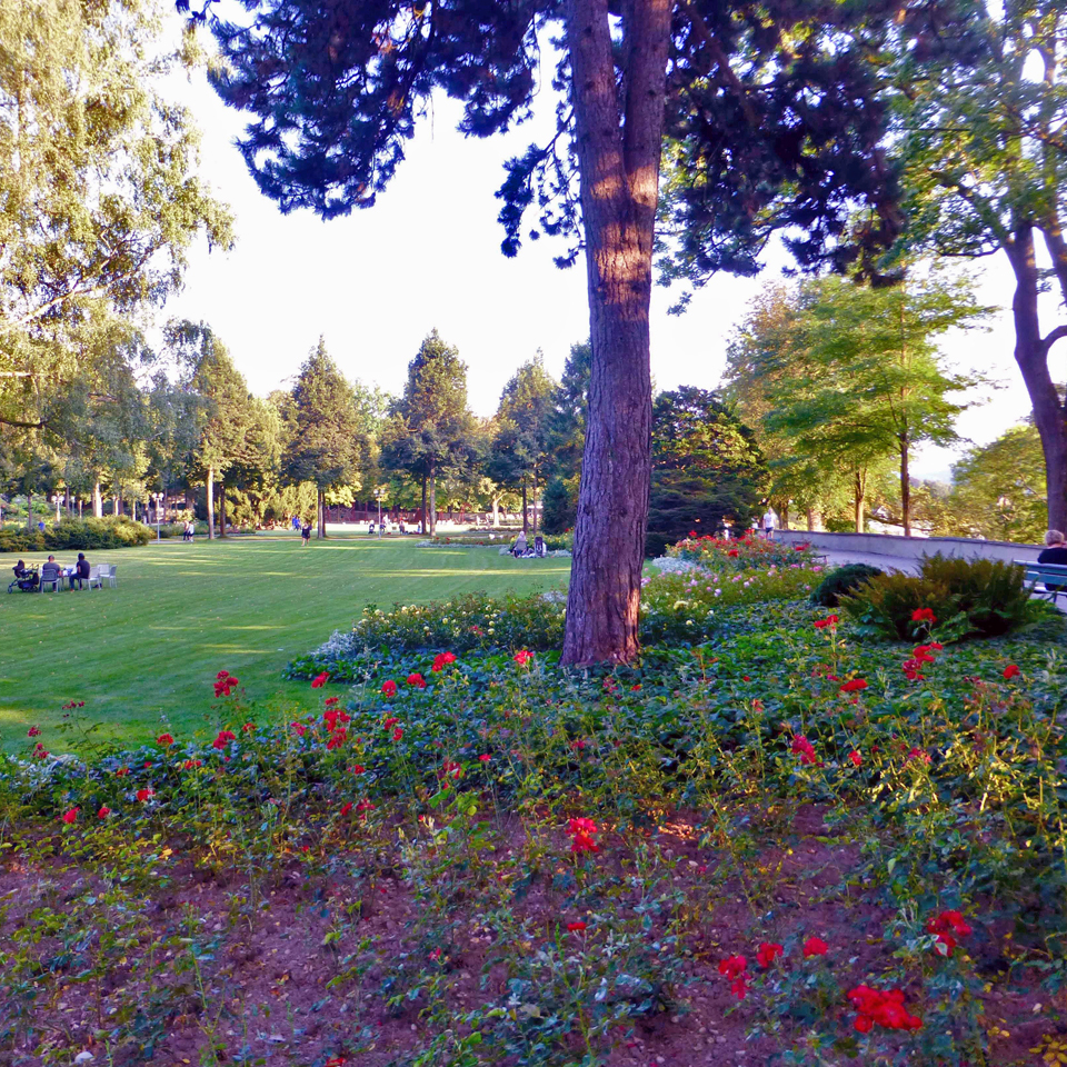 It is a local favorite where readers find quiet nooks in the gardens, children frolic in the playground, and the scent of roses and sounds of church bells fill the air.